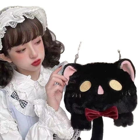 YE288 in stile gatto nero gatto bianco cartone animato borsa di peluche ragazza regalo di compleanno per bambini graziosa borsa rotonda di velluto corto